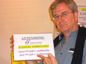 Sciopero is a key word in Italy. It means "strike." You'll find lots of nuisance strikes, generally just 24 hours long. Keep an eye out for signs. This says "train strike": sciopero ferroviario. Knowing this, I made sure to get to my next destination before 9pm, when it was advertised to start.