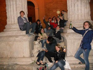 Here in the town of St. Francis, teens gather to drink beer on the steps of the Roman temple on the main square. For some reason, it seemed to me like good wholesome fun.