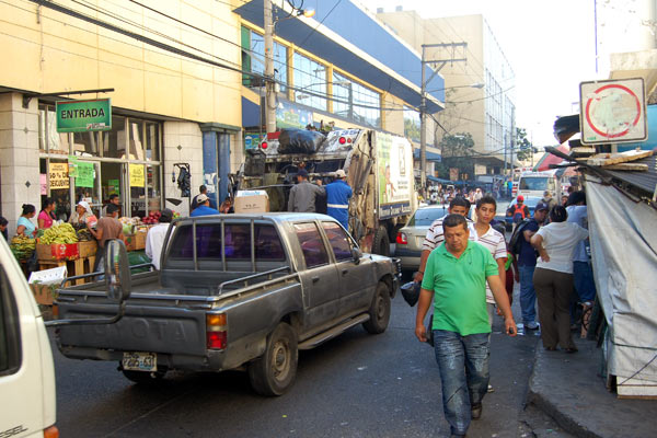 San Salvador's informal economy bullies pedestrians off the sidewalks and into the streets.