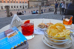 The best five euros you can spend in Siena is for a pre-dinner cocktail on Il Campo, one of my favorite squares in Europe for lingering and people watching.