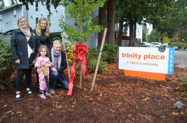 This donation has brought me such joy. Yesterday, I was honored to meet some of the residents of Trinity Place apartments and attend a dedication ceremony for a Japanese snowbell tree planted in my name.