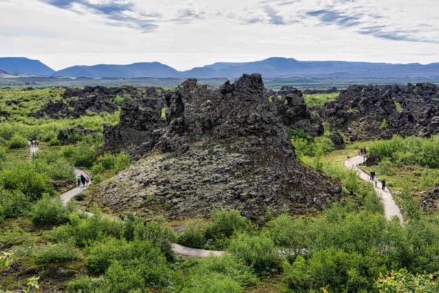 But if you’re doing the Ring in a hurry, keep your Akureyri errands brief, then carry on out of town to the east. After an hour and a half’s drive (stopping midway to see the Goðafoss falls), you reach the shore of Mývatn, a giant, languid lake that anchors a region of intense volcanic activity — past and present.